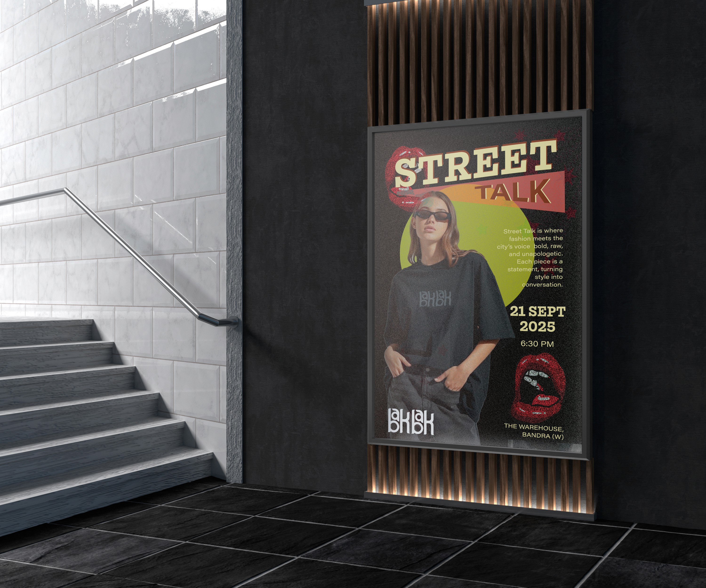 This moodboard captures the loud, playful spirit of Bak Bak — bold colours, graphic shapes, retro textures and expressive illustrations that feel cheeky and full of attitude. The mix of comic-style speech bubbles, pop-art lips, vintage print effects and rock-inspired visuals brings a rebellious, street-smart energy.
