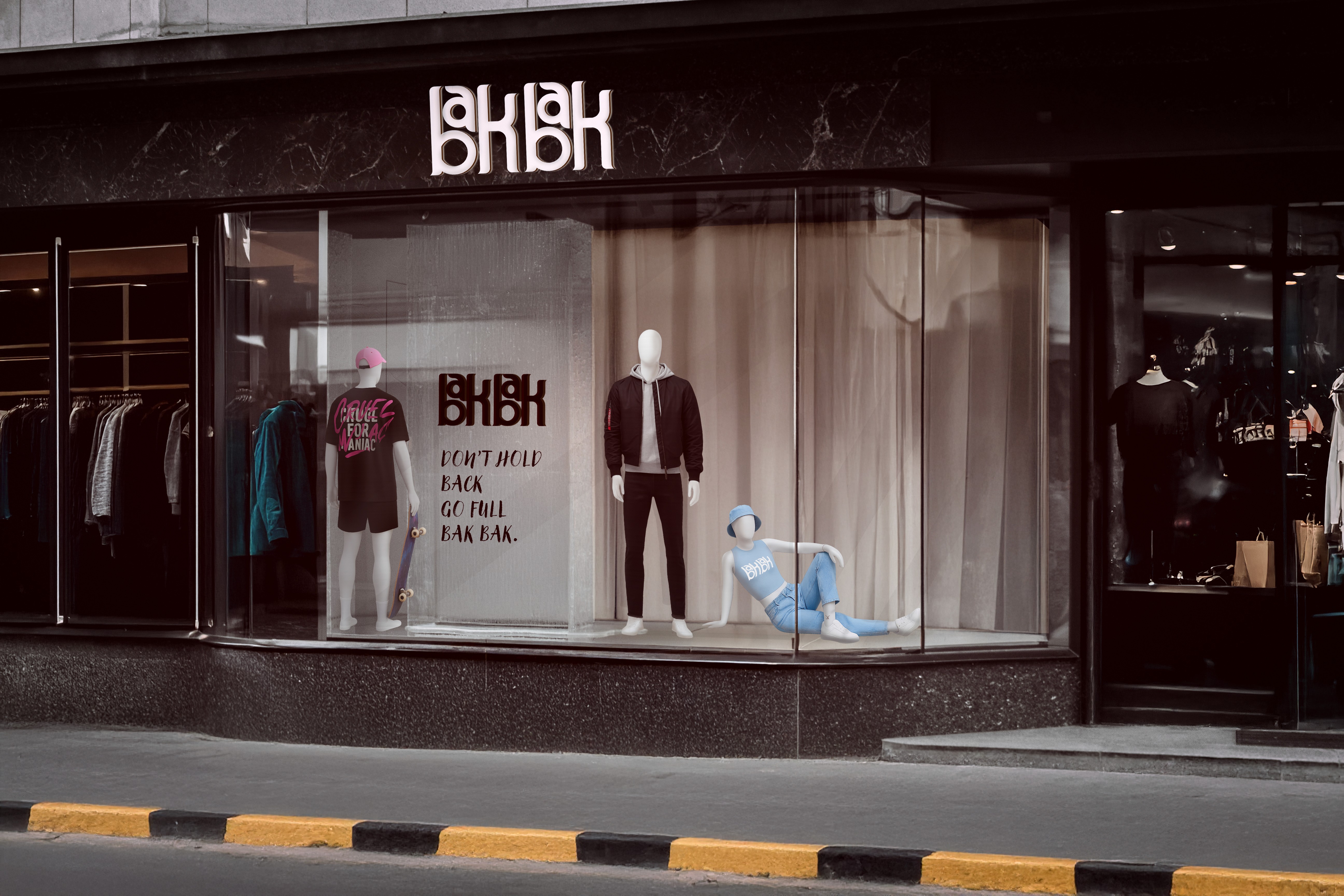 The Bak Bak logo carries the brand’s loud, playful edge with a structured, rhythmic letterform that feels both retro and rebellious. The colour palette strengthens this voice—warm neutrals bring nostalgic grit, bold accents add punch and attitude, and cooler tones give it a fresh, streetwear-ready twist.