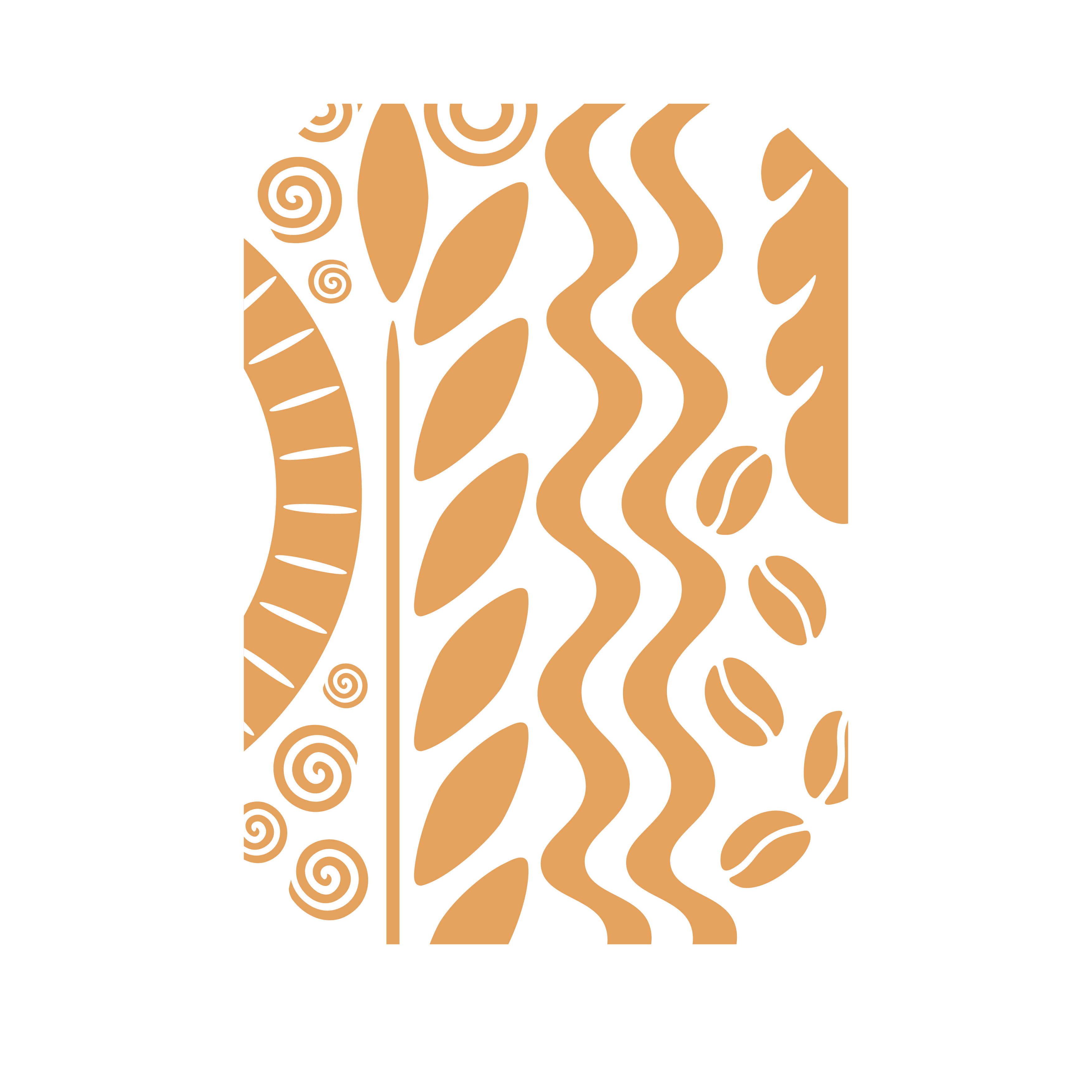 Initial sketches focused on integrating natural motifs, such as leaves and coffee beans, with abstract shapes representing movement and harmony. Different layouts and patterns were explored to create a visual flow that symbolized the transformation of raw ingredients into artful dishes. The aim was to maintain a balance between intricate detail and a clean, modern aesthetic.
